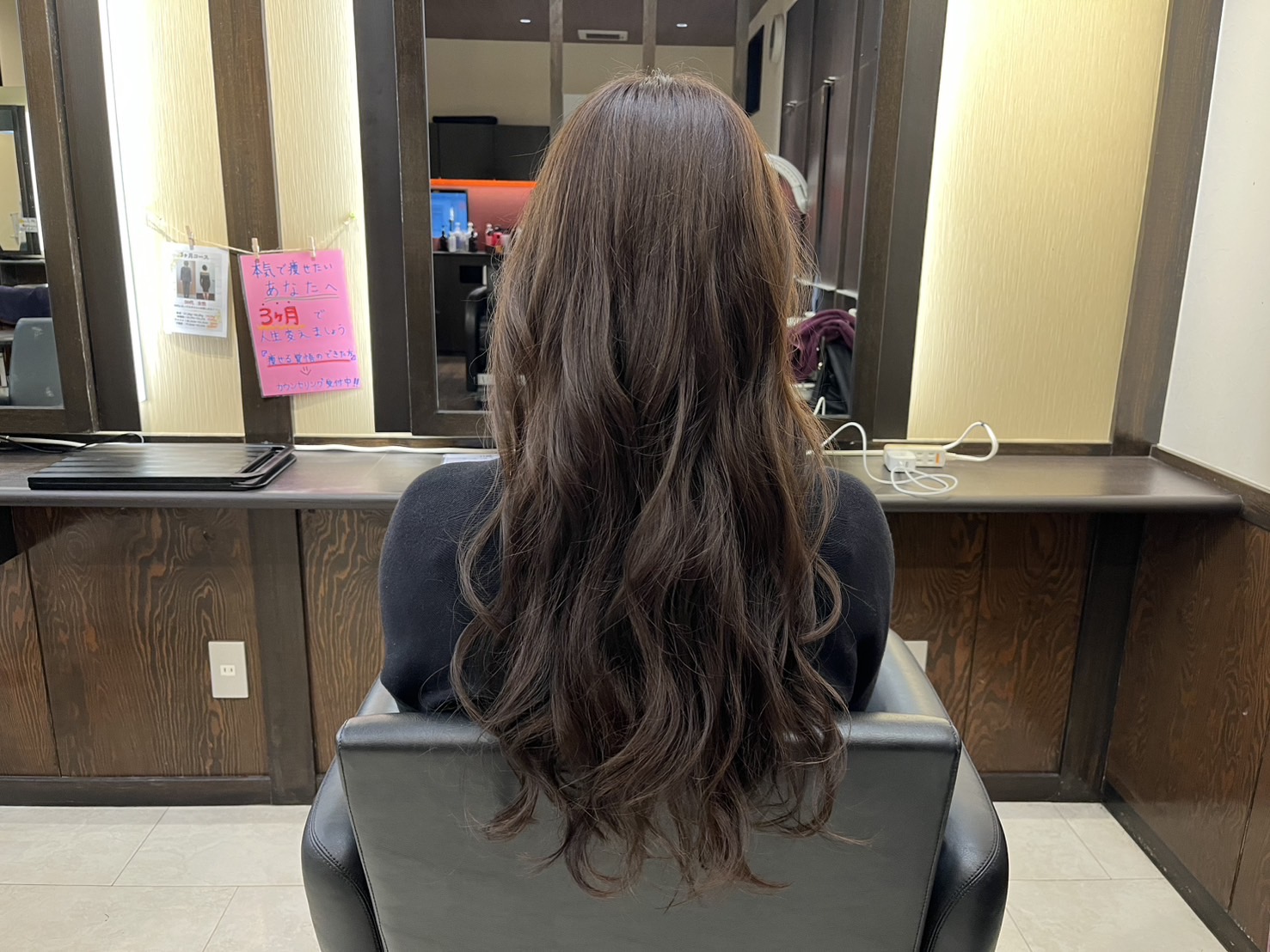 ウェーブスタイルでもこんなにキレイなツヤがでるなんてと驚かれ