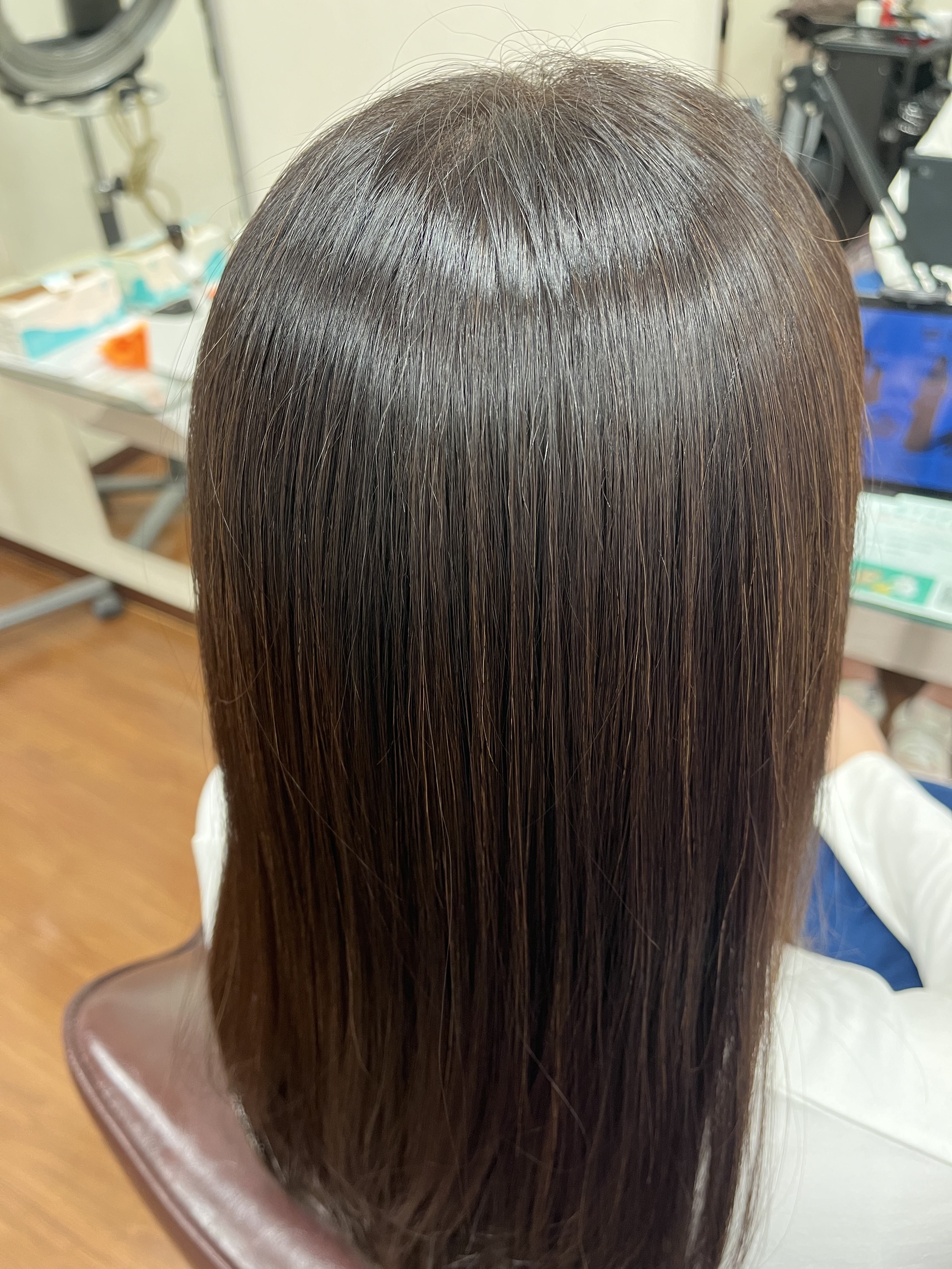 そしてケアコースでは、活性酸素を無毒化し、髪の保水性を高める高濃度水素とうねりを緩和して扱いやすい髪に導くトリートメントをカラーと一緒にさせていただいております。