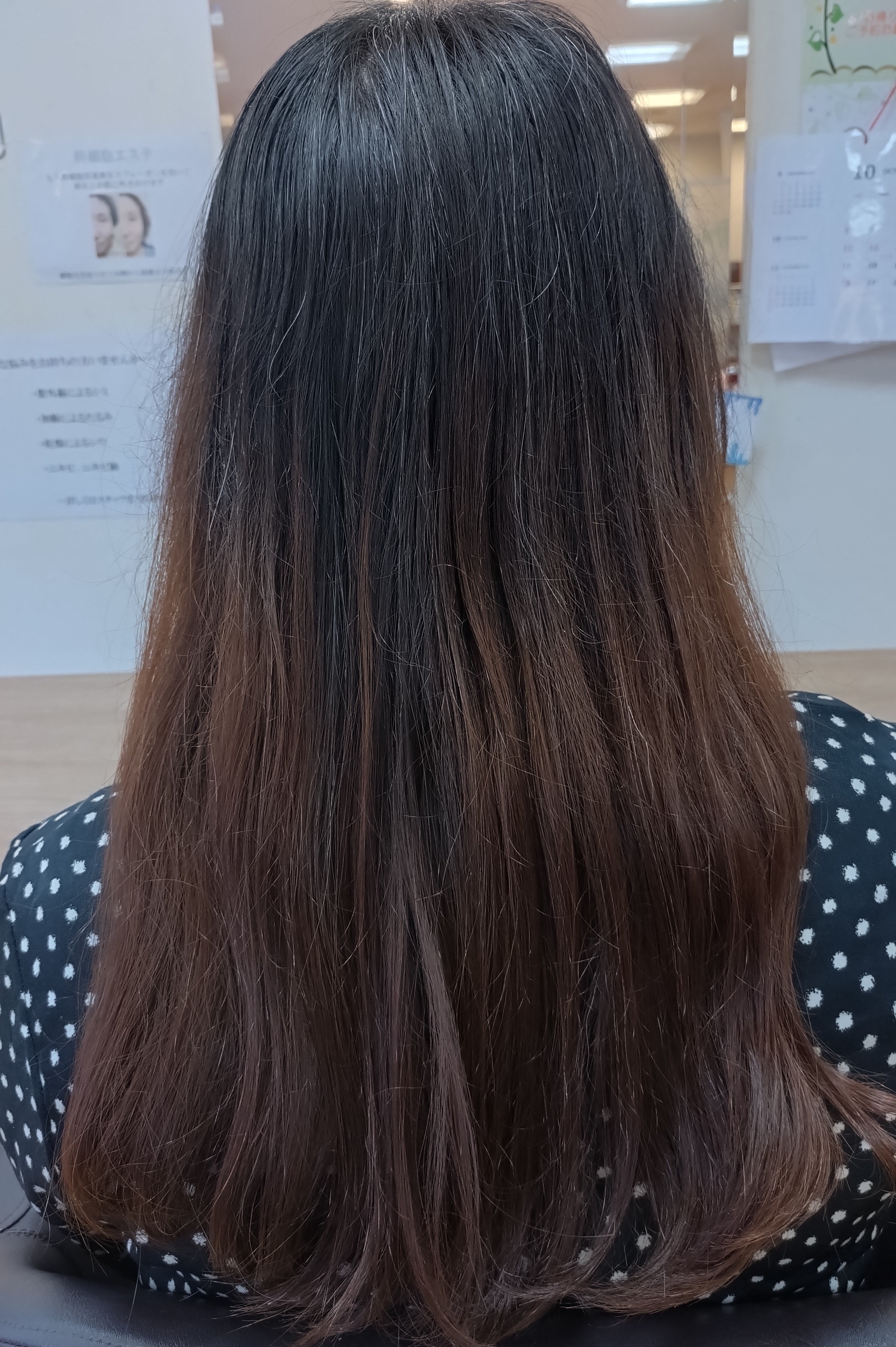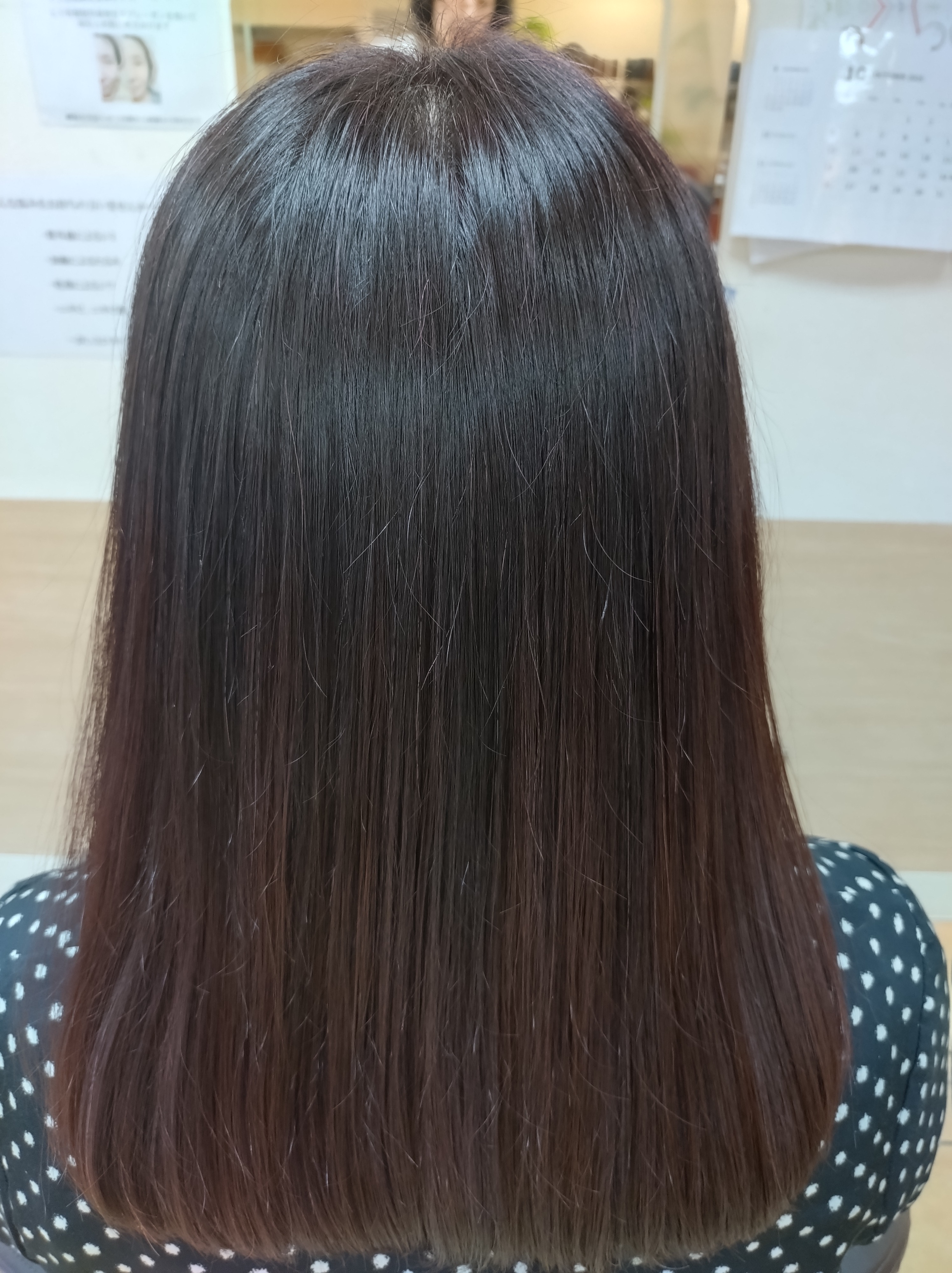 久しぶりのカラーとなりましたがお肌の負担も水素で軽減し髪もツヤツヤ、お色もきれいに入り喜んでいただけました^_^